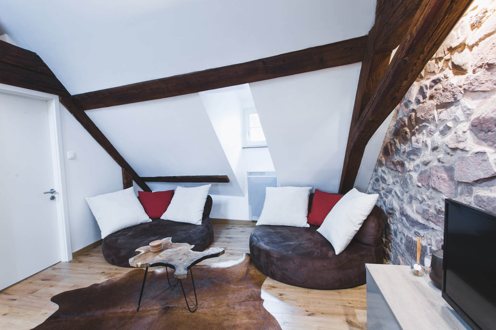 | ✓ | Zwischengeschoss mit 2 Einzelbetten 80 x 200 cm oder 1 Queen-Size Bett 160 x 200 cm |